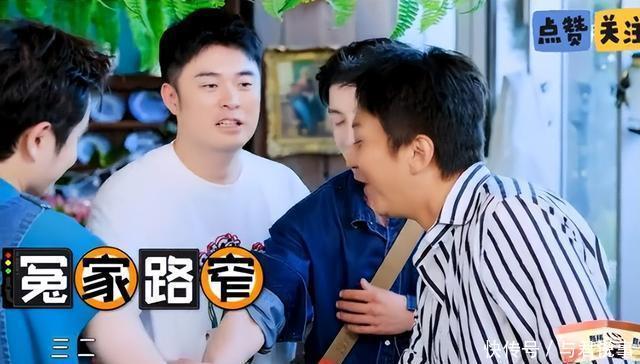 就说成都吵架这段,秦昊穿黑色夹克配运动裤,肚子上的肉随着跺脚一颤一颤,完全没有偶像包袱; 徐志胜卡其色牛仔套装配标志性逗号刘海,被秦昊隔空“怒踹”时不生气还反过来硬刚,弹幕瞬间刷屏“影帝级碰瓷”。